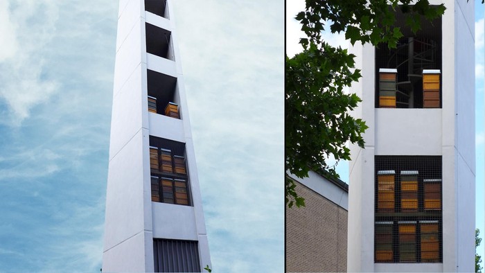 Ursprünglich als Projekt für einen Sommer gedacht, sind die Behausungen der Bienenvölker inzwischen zu einer festen Einrichtung geworden und gehören zum Turm der Wartburgkirche hinzu. Der Bienenturm ist weithin sichtbar und ist zu einem der Wahrzeichen unserer Gemeinde geworden. So können wir jedes Jahr den begehrten Stadthonig - der bei uns selbstverständlich Turmhonig heißt - anbieten.